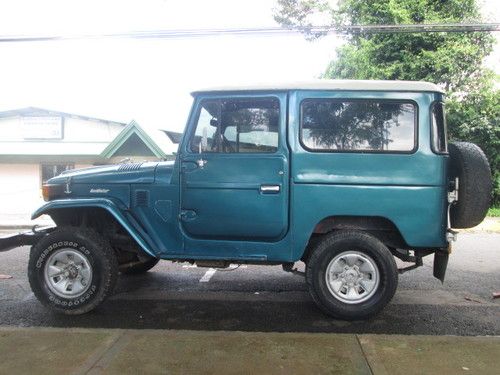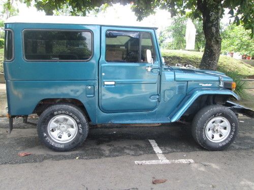 Rare diesel BJ40/FJ40 Toyota Land Cruiser A/C, Heat, PS, PB available for install This is a cool looking blue cruiser. It will turn heads anywhere with the nice color and tinted windows. It's in very good condition with only a few surface rust spots around the rain gutter that can easily be removed. The interior is in excellent condition, including the stock seats front and back. Everything on this cruiser is very original. The engine runs smooth and strong and everything is in working condition. I had my mechanic check it over and it passed his inspection. This is a strong, clean cruiser that will last you for years to come and be a great investment. For more information give a call at 1-888-289-2485. I can have extras installed: PS- $800 PB- $800 A/C- $1,200 Heat- $600 FREE SHIPPING TO HOUSTON OR MIAMI Buyer pays $700 import fee |