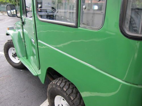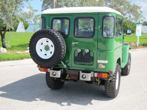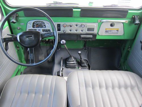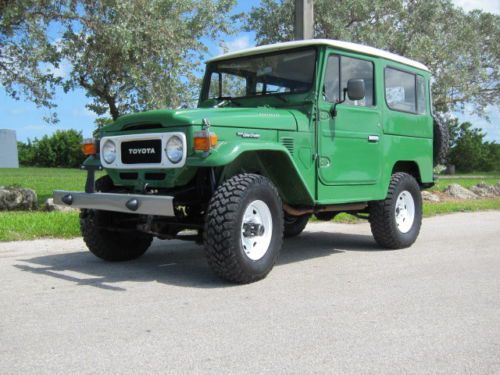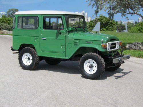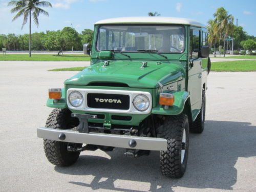 TOYOTA Land Cruiser FJ40- 1983 You are viewing a 1983 FJ40 "last year of the production of this great vehicle" with a vin# FJ40-361890, engine serial 2F705627 and odometer reading 162950 Kms. and title in the State of Florida. This is an stock vehicle all numbers match FJ40LV-KC in a great condition. A full service was done, including: - Complete clutch service (new disc, press plate, slave cylinder and master pump) - New upholstery including seats, headliner, door panels. - Complete tune up. - Complete lube service including engine, transmissions, driveshaft and axles. - Electrical wiring tested and serviced including alternator, starter, new regulator. - New set of (5) tires 31X10.50 R15 This vehicle is an a great condition, engine running strong, no leaks, perfect frame, no accidents; shows some small scratches on the paint. as a used vehicle is sold as is. Please fell free to ask questions. email me at riroama@yahoo.com Good Luck