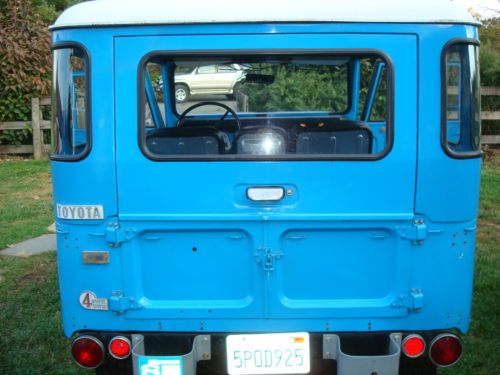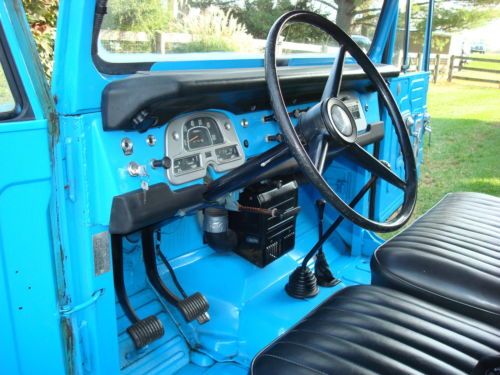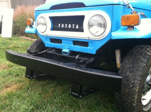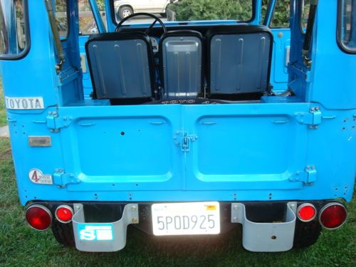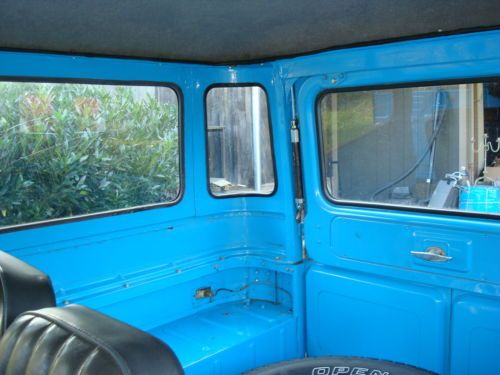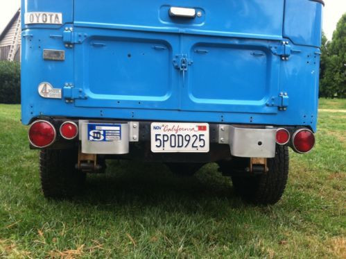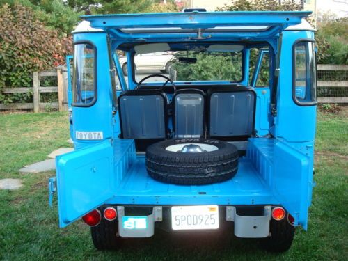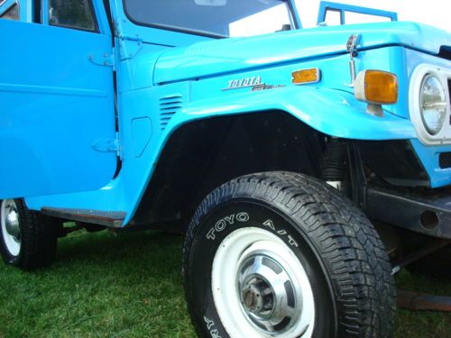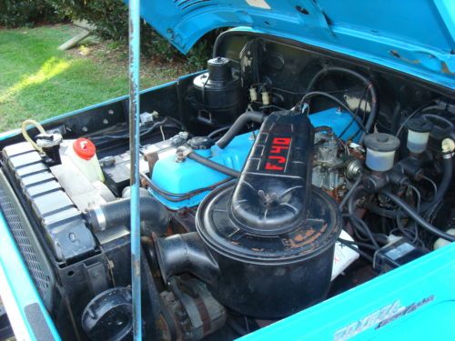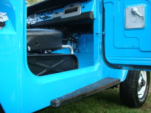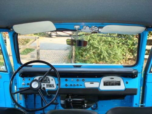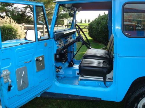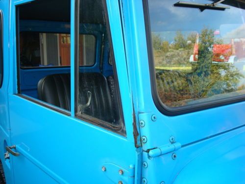 In almost stock condition. Has a decent paint job from previous owner in California. Drives well with all systems operational. I had planned to set up as a lifted, tuff truck, but no time. I cleaned up but have left all blemishes to be seen for your knowledge of true condition. I put an Electronic ignition all in one distributor in it (a DUI mechanical advance version, all vacuum lines disconnected but left in place) new plugs, wires timed and tuned. Original 3 speed, trans and transfer case, engine all well with headers on it... locking hubs and 4x4 all working well! Drum breaks all around, runs, drives, stops, turns all well! All electrical working, lights, wipers... Has a spare rear gas tank and is not fully connected but all seems to be there. Seat material almost perfect, 1 small tear. No rear heater. As seen there is no door molding on the truck now (allows for a better view of condition). Minimal rust especially underneath, I have attempted to show all know bad spots. Video available of running/driving. Nice FJ40 needing a good home. I do have another set of almost new 31" tires and aluminum wheels (these pictures and others available upon request as no more room for images here) I will sell separately off my Orange FJ40. THESE DO NOT COME WITH THE BLUE FJ40 in auction price...