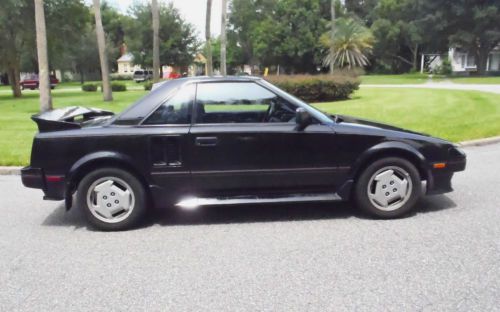1986 TOYOTA MR2 SUNROOF, AUTOMATIC TRANSMISSION. FLORIDA CAR. I bought the car in 2008 in original, unmolested condition. I replaced the headgasket, timing belt, tires, muffler, brake rotors, tie rods, and moldings (eyelash and "C" pillar moldings with factory new one). I did not get the car registered till 2012, because I lived in Europe and I just moved back in 2012. The car still has the original paint except the bumper covers and rear trunk lid, because the paint was fading badly. After the paint job of the bumpers the factory stripes were reproduced and reinstalled to the bumpers. The rest of them are the original. No accident. The original paint has now started to fade on the front trunk and engine lid. There are 2 small dings on the right door and one crack on the rear bumper (see pictures). The paint looks better on the pictures then in real life. The car has some scratches (it is 28 years old). The interior is very nice and clean. The floor carpet and seats looks like new. Everything works and is original. I paid more than $ 350 (at the dealer) for the eyelashes and rear moldings. I believe those are not available anymore. The A/C works but not icecold. Still has the factory cassette player. It also has the factory case for the sunroof panel. The only thing that is missing the sunshade. Tires has 95% of the tread.