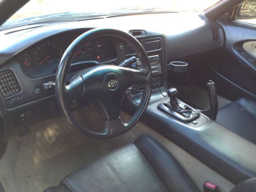 The car has been swapped with a toyota camry 1MZ-FE V6 and a TRD Supercharger running 6lbs. of Boost, Cold air intake with K&N filter, stainless steel headers, and a custom catted duel 2.5" magnaflow exhaust system. It really sounds incredible.. AEM Engine management with both E85 and 91-93 octane tunes.. The car made 273 rwhp on the E85 tune, 440cc fuel injectors, Walbro fuel pump.. Stock 5-speed transmission shifts great, newer clutch with lightweight flywheel. Suspension is TRD lowering springs, Bilstein sports, TRD swaybars, urethane bushings.. Handles very nice.. Wheels and tires are Bronze MB weapon 17x8 front 18x9 rear with 235/40/17 and 265/35/18 Stock turbo brakes, front and rear discs with StopTech brake pads and stainless lines.. JDM items- taillights, rear wing, steering wheel, front lip spoiler, body colored side moldings, front side marker delete.. Interior- This is a factory T-top car, excellent glass, covers are in perfect shape, recovered front seats with heated drivers seat, TRD shift knob, digital boost guage in dash as well as innovate wideband, and boost control.. Cold A/C, everything works. Body / Paint- The body and paint are in great shape, very straight body with no door dings, a few very light stone chips in the front, some swirl marks in the paint, and a few very light scratches.. Overall not quite show quality but very presentable.. The car has been super reliable and i have enjoyed driving it daily without issue.. It is very tight with no rattles, weird noises etc. It handles like a big go cart, has tons of power, sounds fantastic, stops on a dime, and gets looks all the time. Sad to see it go but other priorities forces sale.. Thanks for looking and please contact me for additional info.. Thanks.. Also this car was featured in the February 2013 issue of Grassroots motorsports magazine.. |