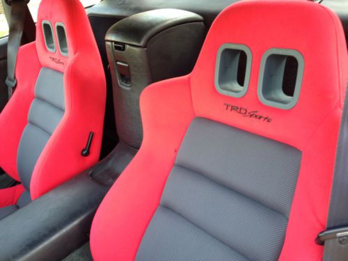 Professionally installed wide body kit. 18 X 9 and 19 X 10 Racing Hart wheels with 225/40 front and 265/30 rear Falken Azenis FK 453 tires with less than 400 street miles. Original speedometer quit at 30577 miles and new speedo install at that time. Now showing 377 miles. TRD seats, suspension (Coil over), steering wheel, front and rear strut tower braces. All stock drivetrain in excellent condition. Turbo engine and 5 speed transmission. No spare tire or battery cover. This is a rare opportunity to get a phenomenal looking car that has the reliable functionality of a Toyota. |