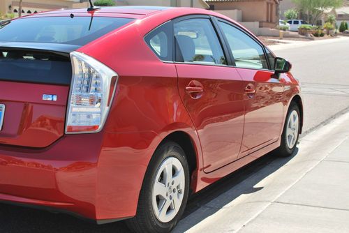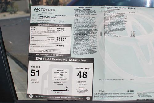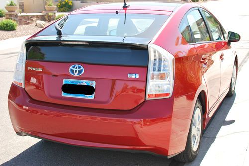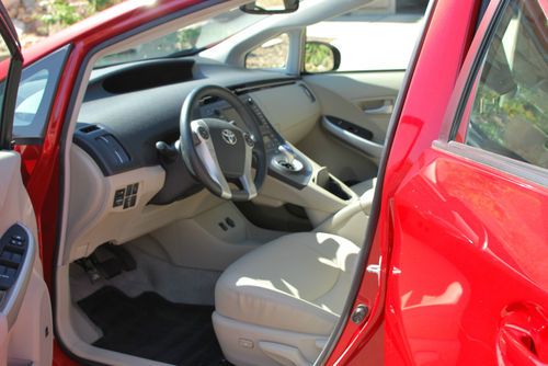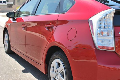 We are looking to sell our 2010 Toyota Prius IV that we purchased new from Anderson Toyota in Lake Havasu City in September 2010. It was originally my wife's car, and she always wanted a red car with tan interior, so we specifically went to that dealership to pick it up with these options. As you can see from the window sticker, it's pretty much as loaded as you can get a IV, with the Solar Roof package, including the Remote AC system, Voice-Activated touch-screen DVD Navigation, JBL Premium audio with XMNavTraffic and Bluetooth integration as well as iPhone/iPod/iPad/USB integration, Toyota Safety Connect, the Cargo Organizer (underneath), Cargo Net, Read Bumper Applique (says Prius in light letters), Door Edge Guard and carpeted front/rear/cargo floor mats. There are currently about 35,335 miles on the odometer, and I drive it about 20 miles RT each day, so the number will slowly increase. It is still under the new car 3 year/36,000 mile warranty.