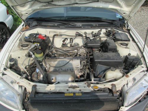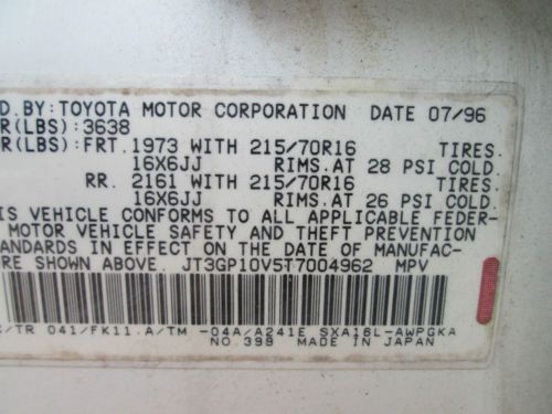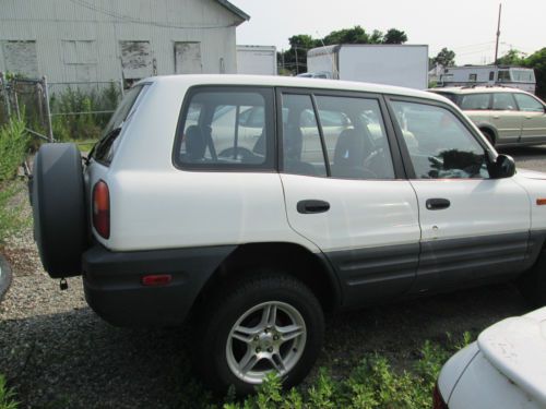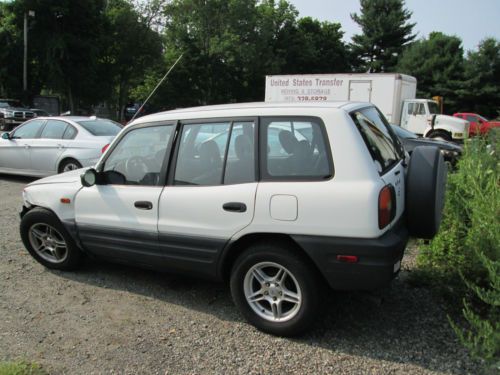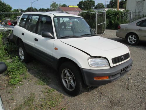 For sale is a 1996 Toyota Rav4. It is white with milti colored interior. There are only 46,676 miles on it. As you can see from the pictures this vehicle was involved in an accident. Both airbags were deployed. There is also some damage to the suspension, and front end. The windshield is broken as well. If you have any further questions or concerns please contact me prior to bidding. Thank you.