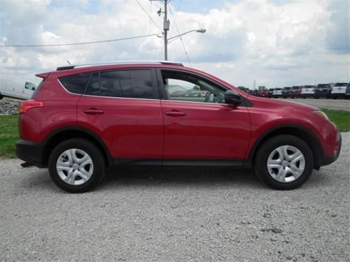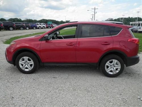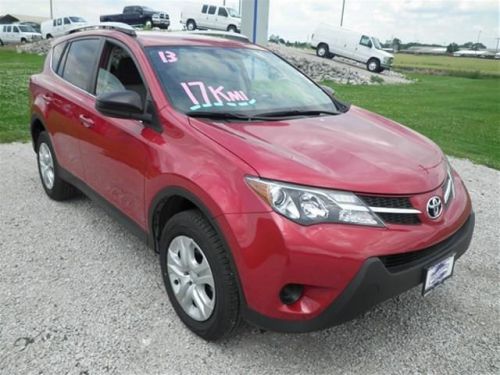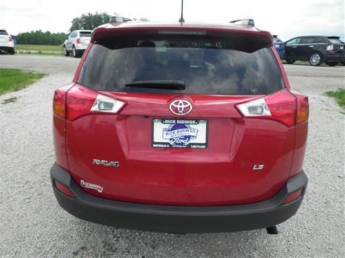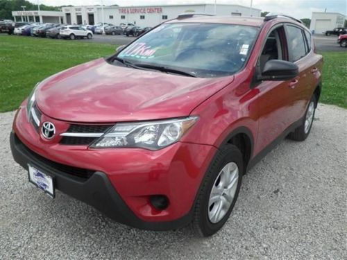 It has tons of optional equipment such as: backup camera, abs, Traction control, spoiler, luggage rack, privacy glass, cd player, cruise, remote entry, cool a/c...It has nice features like: Bluetooth, Power locks, Power windows, Auto, Air conditioning, Cruise control, Audio controls on steering wheel, Power mirrors... Move quickly!!! This gas-saving RAV4 will get you where you need to go.. It has tons of optional equipment such as: backup camera, abs, Traction control, spoiler, luggage rack, privacy glass, cd player, cruise, remote entry, cool a/c... This gas-saving RAV4 will get you where you need to go.. This 2013 Toyota RAV4 Standard features include: backup camera, abs, traction control, spoiler, luggage rack, privacy glass, cd player, cruise, remote entry, cool a/c, Bluetooth, Remote power door locks, Power windows with 1 one-touch, Automatic Transmission, 4-wheel ABS brakes, Air conditioning, Cruise control, Audio controls on steering wheel, Traction control - ABS and driveline, 176 hp horsepower, 2.5 liter inline 4 cylinder DOHC engine, Head airbags - Curtain 1st and 2nd row, Passenger Airbag, Power mirrors, Tilt and telescopic steering wheel, 4 Doors, Front-wheel drive, Fuel economy EPA highway (mpg): 31 and EPA city (mpg): 24, Exterior Parking Camera - Rear camera only, External temperature display, Tachometer, Interior air filtration, Overhead console - Mini, Clock - In-dash, Stability control, Knee airbags - Driver, Trip computer, Video Monitor Location - Front, Speed-proportional power steering, Limited slip differential - Brake actuated, Daytime running lights, Front seat type - Bucket, Reclining rear seats, Split-bench rear seats, Intermittent window wipers, Privacy/tinted glass, Rear spoiler - Lip, Rear wiper, Rear defogger, Center Console - Full with covered storage... Over 400 pre-owned vehicles in stock! Call me TONY WESSELMAN to set an appointment today. 866-729-3036!