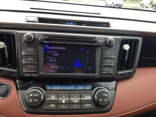I paid $42,000.00 a yr ago for this Limited Edition SUV. I am selling this vehicle with 9231 miles because I now have a company vehicle. It is a Limited Edition bargain, selling at $28,995.00. This vehicle comes very well equipped, with Key-less entry, Push button starting system with keys in your pocket etc. Power Windows, Power Drivers Seat, Reverse Camera and parking sensors, blind spot monitors with mirror display, Heated front seats, Tilting Steering, Multi Function Steering wheel controls with blue-tooth controls, Touch screen Multi function display with GPS Navigator, AM/FM Radio, CD player, Pandora and I-heart radio apps, USB plug-in, Roof Mounted Antenna, etc, See pictures. Cruise Control, ECO function with dash display, Remotely operated rear luggage door with Rear Spoiler. Power Steering, Rear Window Wiper, Halogen Headlights, Anti-Theft Devices, Front and Side Air Bags, Eco display, Driving history and trip counter. Miles per tank of fuel display. Digital Dash Clock, Driver Memory Seat, special limited Edition Two Tone Soft-tec French Stitch leather seats, dash and interior, see pictures. Electronic Stability Control, Turn Signal on both Mirrors, Moon Roof and Sunroof with slide protector. Cargo Area slide cover and cargo area light. Luggage Roof Racks with added Toyota Surf board Rails, Front seat Airbag Deactivation, Air Conditioning and climate controls, Sun Visor Vanity Mirrors, Side Impact Door Bars, Tire Pressure Monitor on Dash. Child Safety Rear Door Locks, Lockable Rear windows from driver controls. Front Fog Lamps, Traction Control, Auto driver window control, Auto-Dimming Mirrors, Split rear Seats, Adjustable Head Rests, Folding Rear Seats, Center Console, Heated Outside Mirror(s), Power Lumbar Driver Seat, Power Mirrors, Rear Window Defroster, Reading Light(s), Power Outlets, Outside Temperature display, Intermittent Wipers, Anti-Lock Braking System (ABS), Auto Headlight control, Lightly Tinted Front windows with Darker Tinted rear windows. This Is Toyota Description of the Limited Edition. The 2013 Toyota RAV4 comes with a 176-horsepower, 2.5L 4-cylinder engine under the hood, fitted to a new 6-speed automatic transmission. The transmission features a new flexible torque-converter lockup feature that permits better efficiency, especially at lower speeds, while smoothing performance as well; EPA ratings range up to 24 mpg city, 31 highway for front-wheel-drive models and there's a new Eco mode that helps aid more fuel-efficient driving. Front-wheel-drive models get an Automatic Limited Slip Differential that can be engaged at low speeds and help negotiate slippery areas like a snowy driveway. The new RAV4 has handling that's more car-like than ever, thanks to a double-wishbone rear suspension as well as a Mac-Pherson strut-type front suspension and, overall, a lowering of the center of mass. Speed-sensitive electric power rack-and-pinion steering provides crisp response. Inside the new RAV4, new thin-profile front seats help maximize legroom in back and front seats. Limited Edition models upgrade the seating further with French stitching on SofTex upholstery and trims. Rear-seat space has been expanded, and the seatbacks can recline somewhat when needed--or flip forward (split 60/40) to expand cargo capacity (with easy-retracting rear headrests). Safety features include a total of 8 airbags, including a driver knee airbag, as well as anti-lock brakes with electronic brake-force distribution and Brake Assist. The body structure has also been completely re-engineered, with more high-strength steel than the previous version. And an available Blind Spot Monitor system with Rear Cross Traffic Alert uses radar sensors to warn the driver of approaching vehicles. RAV4 come with Alloy wheels, plus keyless entry, cruise control, power locks and windows and air conditioning. Roof rails, a moon roof, fog lamps, folding power mirrors with integrated turn signals, dual-zone automatic climate control, sport-bolstered front seats, and a cargo cover. A leather-wrapped steering wheel, Smart Key entry, push-button start, and a power lift gate. Display Audio sound systems with a 6.1-inch touch screen, as well as AM/FM, CD, a USB port, an auxiliary input, Bluetooth audio streaming and six speakers. Bluetooth hands-free calling capability is also included. Through the audio systems, you can also use the base system to control climate-control settings, use the available navigation system, or access subscription-based En-tune functions--with mobile apps for services like Bing (search) and Pandora (streaming radio). There's also a multi-information display (MID) that can be navigated through buttons on the steering wheel, with easy access to trip-computer functions and other displays. The step-up JBL Premium Audio system that's available on the RAV4 Limited adds a 576-watt, 8-channel amp and a total of eleven "Green Edge" speakers. |