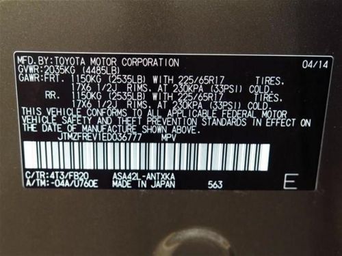 VIN (Vehicle Identification Number): JTMZFREV1ED036777