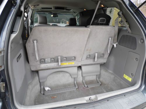 I am selling my '06 Toyota Sienna. My family demographics' have changed, and I no longer need this big of a vehicle. Runs great, looks great. Captains chairs in front, and middle, back seat is 2/3-1/3 split bench. Bench folds down to floor level for awesome cargo space. Back seats fold and tip forward. DVD player for back seat viewing, 3 headphones, 1 remote. 6 disk CD player. Rear climate control, back seat cup holders. Memory driver seat for seat position 1 & 2. Auto side doors and back hatch. Keyless entry for all doors. Side passenger windows have shades. I have possession of the clear title. If I sell my vehicle, I will pull this auction.