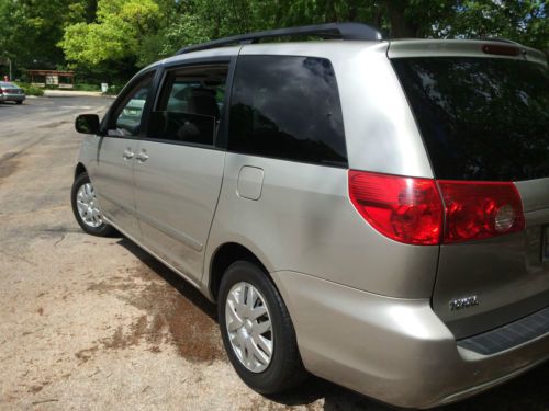 Nice 2008 Toyota Sienna LE, 2nd owner. 215,xxx miles. Nicely taken care of. Has some dings and scratches as a 215k mile would have. AC blows cold, heat works. suspension works, transmission works, radio works, though antenna broke off a while ago, tires need replacing, brakes are not making noise, but i don't know how much they have left on them. Both sliding doors work well. It's a toyota what can I say, for 215k miles has stood up well, overall was a good car for me. time for a new one. This care is being sold as is. clear title in hand. Just detailed and had the interior shampoo'd. No accidents. Will Ship, you have to arrange. |
