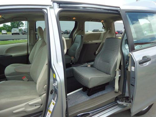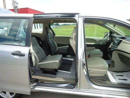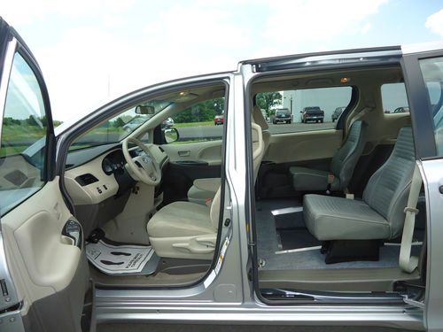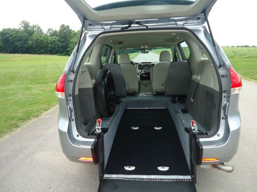 UP FOR SALE IS A 2011 TOYOTA SIENNA WHEELCHAIR/HANDICAP REAR ENTRY WHEELCHAIR CONVERSION VAN. THIS VAN HAS THE ATS ADVANTAGE RE L SEMI FLAT FLOOR REAR LOADING SYSTEM. IT HAS THE ALL NEW 36 INCH WIDE RAMP AT THE ENTRY POINT. THE VAN HAS THE Q-STRAINT WHEELCHAIR/HANDICAP RESTRAINT SYSTEM WHICH INCLUDES FOUR RETRACTABLE WHEELCHAIR STRAPS AND FULL WHEELCHAIR HARNESS SYSTEM. THE RAMP IS DUAL LOCKING, NON SKID,ADA COMPLIANT WITH THE PATENTED ATS SHOCK ASSIST SYSTEM. THE RAMP STOWS AND DEPLOYS WITH EASE AND CAN BE USED BY ANYONE. THE WIDE RAMP SYSTEM WILL ALLOW FOR LARGE WHEELCHAIRS OR SCOOTERS. THE VAN IS FULLY ADA COMPLAINT AND WILL PASS ALL COMMERCIAL REGULATIONS. THE VANS INTERIOR IS WELL KEPT WITH NORMAL WEAR. THE EXTERIOR IS ALSO NICE WITH NORMAL WEAR. THE VAN JUST HAD ASE INSPECTION AND SERVICE WITH NO ISSUES FOUND. THE VAN SHOULD STILL HAVE THE TOYOTA POWERTRAIN WARRANTY IN PLACE. THE CONVERSION ALSO IS UNDER THE ATS THREE YEAR WRITTEN WARRANTY. THE VAN RUNS AND DRIVES GREAT AND IS ONE OF THE BEST RIDING WHEELCHAIR VANS I HAVE DRIVEN. WE CAN FIANANCE PERSONS WITH APPROVED CREDIT BUT YOU MUST CALL FIRST FOR CREDIT CHECK BEFORE BUYING. PLEASE HAVE ALL FUNDS SECURED BEFORE BUYING AND BE READY TO MAKE THE 500.00 NON REFUNDABLE DEPOSIT WITHIN 24 HRS OF AUCTION ENDING. FULL PAYMENT IS DUE WITHIN 7 DAYS OF AUCTION ENDING. WE CAN SHIP VAN ANYWHERE AT BUYERS EXPENSE BUT UNIT MUST BE PAID IN FULL BEFORE IT SHIPS. WE ALSO OFFER DELIVERY TO THE LOUISVILLE KY OR NASHVILLE TN AIRPORTS FOR BUYERS DAILY. FOR QUESTIONS EMAIL OR CALL RON @ 270 634 0721 OR ROB @ 270 634 1466. REFER TO LOT 1787 .WHEN CALLING. THANKS