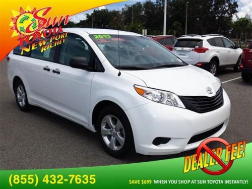 Toyota CERTIFIED** New Inventory!! Less than 7k Miles* All the right toys! This gas-saving 2013 Toyota Sienna will get you where you need to go. Safety equipment includes: ABS, Traction control, Curtain airbags, Passenger Airbag, Stability control...NICELY EQUIPPED: Power locks, Power windows, Auto, Rear air conditioning, 266 hp horsepower, 3.5 L liter V6 DOHC engine with variable valve timing, Tilt and telescopic steering wheel, 4 Doors, FWD, Fuel economy EPA highway (mpg): 25 and EPA city (mpg): 18...Toyota Certification comes with a 7-Years/100,000-Mile Powertrain Warranty from original in-service date, 12-Month/12,000-Mile Comprehensive Warranty from date of purchase, 160-Point Inspection and Reconditioning, and 24-Hour Roadside Assistance. Save $699 instantly at Sun Toyota! When other dealers say 'NO' Sun says 'YES!' ** #1 Certified Dealer ** OVAR 250 Used Vehicles in STOCK to CHOOSE From...ALL Vehicles are Priced to SELL** Our I-Team will provide you with a Quick and Reliable Information and Our BEST E-PRICE! Call Today and Take Advantage of A GREAT DEAL!!!