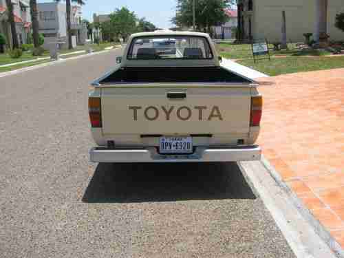 This is a 1986 Toyota pickup long bed with 37,200 original miles. I purchased this truck at an estate sale this past december. I originally went to buy some antique furniture and saw this little truck for sale. I spoke a family member who advised me that his mother bought this truck brand new in the Austin Texas area and she drove it when need. She passed away at the age of 91 a few years ago and the truck sat since then in a barn behind the home. I know these trucks well, I drove one just like it all through college and graduate school. they are die hard. Bid wth confidence, I would not hesitate to drive it anywhere. I had the transmission serviced as well as the cooling system to prevent any injury to the truck when I drove it home loaded with antiques.