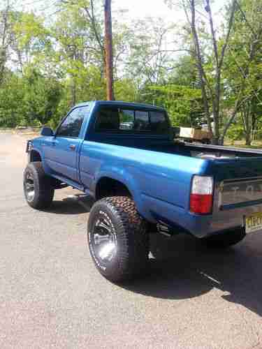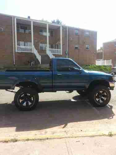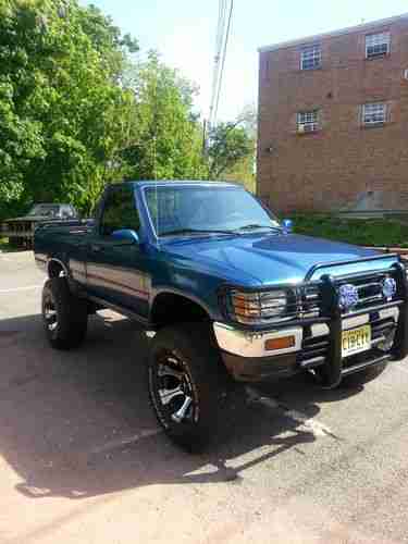 HI IM SELLING MY 1993 TOYOTA PICK UP 4X4 FRAME OFF RESTORE. THIS IS A BEUTIFUL TRUCK. NEW FRAME, NEW BED FROM THE TOYOTA, NEW PAINT JOB, NEW FRONT END, REBUILD ENGINE WITH ONLY 150 MILES ON IT, NEW CLUTCH, NEW WHEELS, 95% LIFE ON TIRES WORTH $150 EACH, NEW AUDIO SYSTEM, NEW GRILL WITH HEAD LAMPS, TO MAKE THIS A SHORTH STORY THE ONLY THING NOT NEW ON THIS TRUCK IS THE MUFFLES AND THE EMERGENCY BRAKE SYSTEM, ( OUTSIDE).. INSIDE EVERYTHING IN VERY GOOD SHAPE... MOTOR RUNS GREAT AND MANUAL TRANSMITION SHIFTS NICE AND SMOOTH. I PUT OVER 18 MONTHS OF WORK INTO THIS TRUCK WITH LOTS OF HOURS TO MAKE IT LOOK THIS NICE. I GOT MORE THAN $8500 JUST ON PARTS AND PAINT JOB. PLEASE SERIOUS BUYERS. NO BROKERS PLEASE. U ARE WELCOME TO COME AND TAKE A LOOK AT IT BUT PICTURES SPEEK FOR THEMSELVES. IM SELLING THIS TRUCK LOCAL ALSO SO THIS ACTION CAN END ANYTIME, ALSO IM DRIVING THIS TRUCK ON SATURDAYS, SO MILES MIGHT CHANGE A BID. REAR BUMPER WAS JUST PURCHASE AND IS ON ITS WAY SO THAT WILL BE ON IN A FEW DAYS. ANY QUESTIONS PLEASE TEXT ME AT 908-892-5858 . SE HABLA ESPANOL. THIS IS A PRIVATE SELLER, THIS TRUCK IS GARAGE KEEP HAS NOT SEEN ANY SNOW OR RAIN AFTER FINISH. BUYER RESPOSIBLE FOR PICKING UP THE TRUCK OR SHIPPING FEES. $1000 DOLLARS DEPOSIT (NON -REFUNDABLE IF U BACK UP) HAPPY BIDDING!!