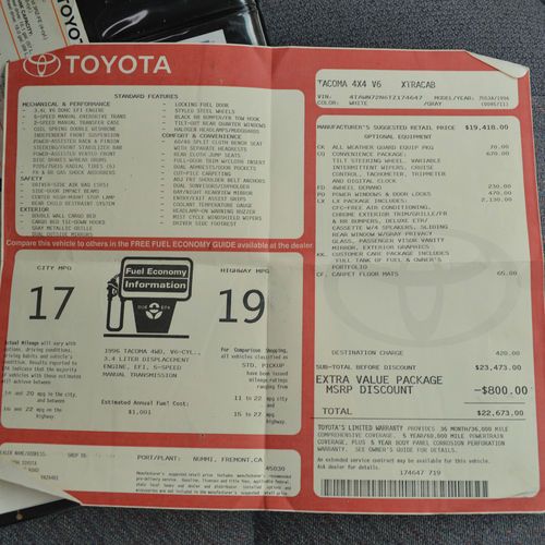You are bidding on a very nice freshly paint Tacoma the first year of this body style. Paint is about 3 weeks old and very well done slick truck. It runs out and drives great with no issues to be found. Small coil spacer lift to fit the 285/75/16 tires that have about 40% life left on brand new 16x8 Eagle alloy wheels. Engine and tranny very sound and tight a whole lot of life left. truck has very minor surface rust on bottom of bed and bad very solid truck. Frame is in excellent condition solid everywhere. Interior is in good shape other than a few bumps and bruises of everyday life. New rear bumper. Truck has bed liner and a new bed cover. Between oil pan and tranny is damp but no oil drips to be found. All fluids have been recently changed and all converted to synthetics. Truck is not perfect to to be graded as an easy 90 a B+. 500.00 due at end of auction and rest due upon pick up. Happy bidding and God bless! A/C works great and no idiot lights on. Also power door locks and windows along with am/fm cd. Truck could use new exhaust from cat back, has a very small exhaust leak just havent had time to attend to it. Thanks!