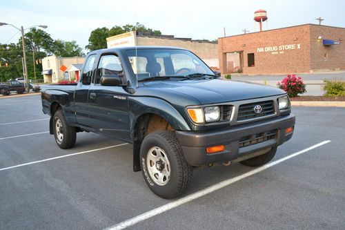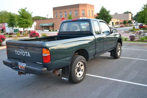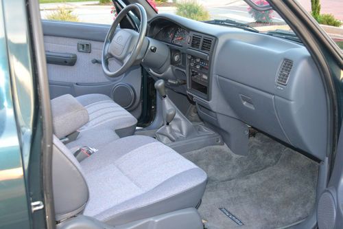 UP FOR SALE IS A VERY RARE FIND. THIS TRUCK IS AS CLOSE TO NEW AS YOU WILL FIND. 1997 TOYOTA TACOMA, EXTENDED CAB, 2.7L 4CYL, WITH 5 SPEED TRANSMISSION, WITH ONLY 16K MILES!! TRUCK WAS BOUGHT NEW IN IDAHO BY A CABELA'S FIELD REPRESENTATIVE. WAS AN OLDER GENTLEMAN. THERE WAS A CAMPER IN THE BED OF THE TRUCK WHEN IT WAS BOUGHT NEW THAT HE STAYED IN WHILE HE WAS ON THE JOB DISPLAYING ITEMS. COUPLE YEARS LATER CABELA'S BOUGHT HIM AN RV TO STAY IN AND TRUCK SAT UNDER SHED AND NEVER GOT DROVE. TRUCK HAS BEEN TAKIN VERY GOOD CARE OF. HAS FEW SMALL ROCK CHIPS ON HOOD THAT YOU CANT SEE IN WITH A CAMERA AND A FEW ROCK CHIPS IN FRONT OF THE BACK TIRES. ALOT OF GRAVEL ROADS IN IDAHO. HAS NO DENTS AT ALL PAINT STILL SHINES LIKE NEW WITH NO FADING AND HAS ABSOLUTELY NO RUST!! NO LEAKS AT ALL OF ANY KIND! TRANSMISSION SHIFT BETTER THEN A NEW ONE. CLUTCH IS TIGHT AND SHIFTS SMOOTH IN ALL GEARS AT ANY SPEED. THE 4WD WORKS GREAT AS WELL I LOCKED IT IN THE OTHER DAY IN MY FRONT YARD TO MAKE SURE IT WORKED. TRUCK HAS NEVER BEEN IN THE MUD. IT DOES NOT HAVE AC. IT CAME FROM THE FACTORY THAT WAY ALL PLUG INS IS THERE UNDER HOOD TO HOOK AN AC COMPRESSOR UP. WOULD COST AROUND $700 TO PUT AC ON IT. THIS IS A BASE MODEL TRUCK WITH MANUAL WINDOWS AND LOCKS. DOES HAVE POWER STEERING, AM/FM RADIO. HAS A BRAND NEW SET OF TIRES STILL GOT THE NIPPLES ON THEM, OIL JUST CHANGED AND ITS SO CLEAR ITS HARD TO SEE IT ON DIP STICK, AND A FULL TANK OF GAS READY FOR THE NEW OWNER TO FLY IN AND DRIVE THIS NICE TRUCK HOME. PLEASE ONLY BID IF YOU GOT THE MONEY! THIS IS A NO RESERVE AUCTION IT WILL SELL TO HIGHEST BIDDER. I RESERVE THE RIGHT TO END AUCTION EARLY IF I GET AN OFFER I CANT REFUSE. CLEAN SC TITLE IN HAND. TRUCK HAS NEVER BEEN WRECKED OR PAINTED. I FEEL I HAVE DESCRIBED THE TRUCK AS HONEST AS I CAN IF THERE IS ANYMORE QUESTIONS PLEASE FEEL FREE TO ASK! THANKS AND HAPPY BIDDING! 864-617-6645