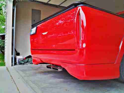 Upper and lower mesh grill, mesh hood scoop, 2 two projector headlights, US Flag bumper insert, Fully customized rear end using AVS billet taillights w/reverse light, rollpan, relocated tailgate