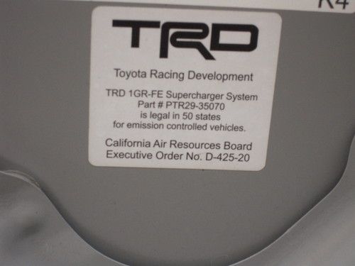 The Supercharger has all the quality and reliability you have come except from a Toyota product coupled with great attention to detail and remarkable fit and finish provided by TRD. To establish the relaibility that Toyota demands TRD has put engine , supercharger and drive-train through a rigerious test regiment with repeated durability cycles each follwed by completed disassembly and eximanitation then reassembled and retested to insure all components are within strict Toyota tolerances.