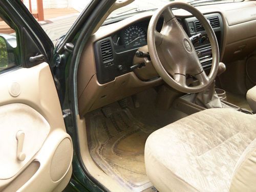 Truck has green paint ouside, good clean finish, no dent other than the normal nicks here and there, interior is clean with not trears in fabric, smoke-free, runs great, has rain guards on windows, sliding rear window in back of cab, bed liner and a aluminum tool box in the bed. Great sound system by sony, has cup holders and (2) 12 volt power outlets in dash, plus adjustable outside mirrors.