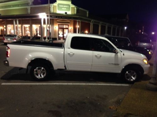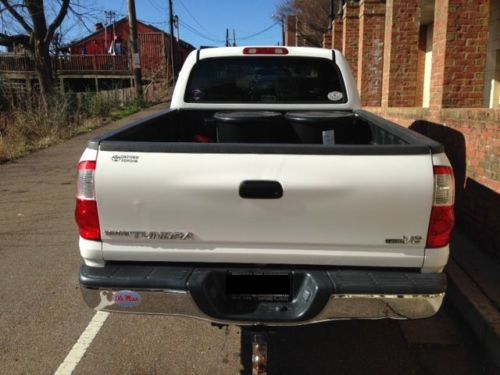 You are looking at my 2006 Toyota Tundra crew cab SR5 2WD. This is a one-owner truck, and it is mine....I literally put all 93K miles on it myself. The car fax report will say 2 owner, but that's because the company I work for leased this for me new in January 2007 from Oxford Toyota in Oxford, MS, then I loved it so much, I bought it outright when the lease was up. Non-smoker. The interior is in excellent condition. The exterior looks great, in spite of its few blemishes (which I explain in the description above ^^^, and have included pics of). The only reason I am selling this, is because I just got back into the cattle business, and am purchasing a HD 4x4. Otherwise, I would drive it for another couple hundred thousand miles...I've never had one bit of trouble out of this truck. The tires are Toyo A/T that have about 50% tread left, or about 30,000 miles. I have plugged in all information on Kelley Blue Book and NADA and done my research, and the Buy It Now price is more than fair, so there isn't much wiggle room here. This will be an awesome truck for the next owner. I have the title in hand, and this truck is available for pick-up ONLY. IF YOU HAVE LESS THAN a 10 FEEDBACK SCORE OR HAVE NEGATIVE FEEDBACK, I WILL DELETE YOUR BID! I will take CASH or CERTIFIED CHECK as payment ONLY. I have 100% positive feedback, so bid/buy with confidence. Good luck and Happy Bidding!