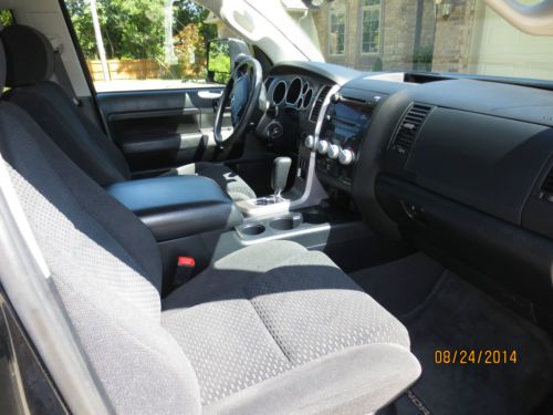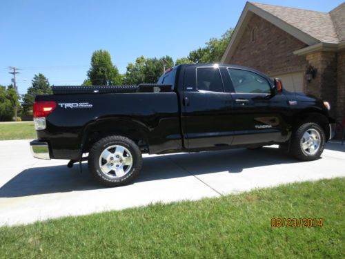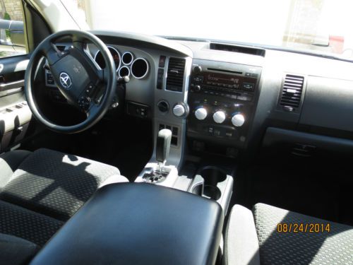 UP FOR SALE IS A 2012 TOYOTA SR5 DOUBLE CAB WITH THE TRD PACKAGE. I PURCHASED THIS TRUCK IN MARCH OF 2012. IT HAS NEW BF GOODRICH TIRES (4000 MI). I AM A RETIRING HOME BUILDER AND HAVE BOUGHT A SMALLER TRUCK. I WILL LEAVE THE TOOL BOXES OR THEY CAN EASILY BE REMOVED. THE TRUCK HAS ALWAYS BEEN SERVICED AT THE LOCAL TOYOTA DEALER. THE MILES DRIVEN ARE TO WORK AND TO AND FROM THE LAKE ON WEEKENDS. VERY SHARP TRUCK - BLACK ON BLACK. I CONSIDER THE TRUCK TO BE IN EXCELLENT CONDITION. THE PAINT ON THE FLOOR OF THE BED IS VERY GOOD BECAUSE THERE IS A RUBBER BED MAT. THE WHEEL WELLS AND SIDEWALLS ARE SCRATCHED. THERE ARE 8000 MILES LEFT ON THE MFG. WARRANTY. IF THE WINNING BIDDER DOESN'T THINK THE TRUCK IS JUST LIKE I HAVE DESCRIBED IT THEY CAN CANCEL THEIR BID. THANKS. GREG 417 818-3454. |