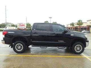 One owner, non smoker with only 12,500 miles. This is an exceptional truck that has been driven for less than a year. Full Toyota warranty remaining plus free Toyota Care Maintenance Package remaining (12,500 more miles or 12 months). All maintenance has been done by Toyota and all documentation will come with the truck. The truck is a Crewmax TRD Offroad Edition. The TRD Offroad Package comes with the following: 5.7 liter V8, Bilstein shocks, Toyota towing package with upgraded rear gear, spray in bedliner, and push button 4 wheel drive. Additional features include: Full roll down rear window, backup camera, MP3/CD/Satellite Stereo, adjusable rear seating. The truck also has a 3/2 leveling kit and NFab step bars. Additionally, it has the TRD Rock Warrior wheels. This is an amazing truck and has been meticulously maintained for the very few miles it has on it. Truck is located near Houston, Texas. Buy will be responsible for shipping or can arrange local pickup.