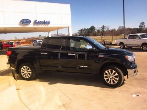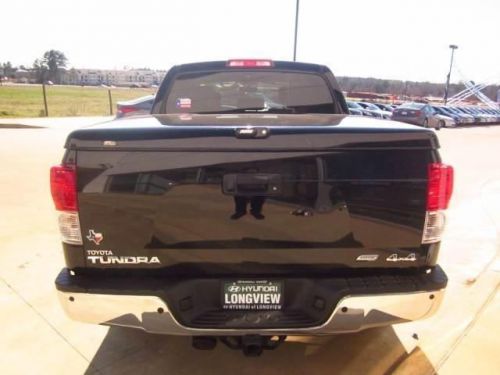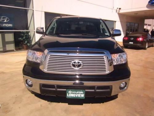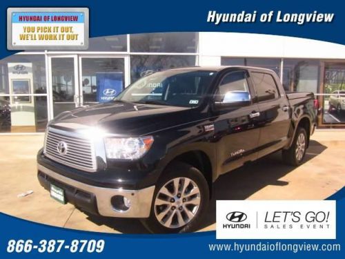 2012 Toyota Tundra 4WD Truck CrewMax 5.7L FFV V8 6-Spd AT LTDHyundai of Longview presents this CARFAX 1 Owner 2012 Toyota TUNDRA 4WD TRUCK CREWMAX 5.7L FFV V8 6-SPD AT LTD with just 23719 miles. Represented in BLACK. Under the hood you will find the 5.7L V8 32V MPFI DOHC coupled with the AUTOMATIC. Options and Safety Features: Nicely equipped with 3-point seatbelts in all seating positions -inc: auto & emergency locking retractors driver & front passenger pretensioners w/force limiters driver emergency locking retractor 4-wheel anti-lock brakes w/brake assist Active traction control Backup camera display Child restraint system top tether anchors for rear center seat Child-protector rear door locks Daytime running lights Driver & front passenger advanced airbags w/passenger cutoff switch Driver & front passenger knee airbags Driver & front passenger seat mounted side airbags Front & rear parking assist sonar Front & rear roll-sensing side curtain airbags Rear outboard seat LATCH anchors Tire pressure monitor system Vehicle stability control. Awards And Accolades: ALG Best Residual Value Hyundai of Longview WE WILL BEAT ANY DEAL! At Hyundai of Longview our goal is to provide you with an excellent vehicle purchase and ownership experience. For the finest in personal customer service please contact the Internet Department directly through this website. Also please note we take great care to keep our listings up to date however our inventory changes daily and not all inventory is online. If you do not see what you are looking for then please call. We look forward to providing you with excellent customer service and welcoming you as a Hyundai of Longview client. You can reach us at 888-464-8850 or by visiting us online at www.hyundaioflongview.com. Please call for more information. Please call us for more information. "You pick it out and We'll work it out!"