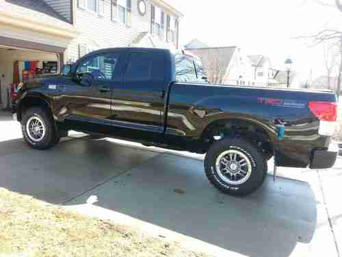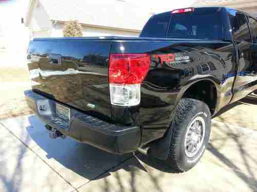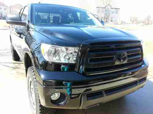 Hello, I am selling my beautiful 2012 toyota tundra. It is a 4x4 crew cab TRD Rock Warrior!!! Truck is black on black and perfect in every way possible!!!Truck has 3300 original miles... Not a misprint.. I am the first owner and have a clean and clear title in hand.This truck is as new as they come, always detailed , washed ,waxed, and garage kept and driven on nice days. Never had anything in the box or been towed with.... No imperfections what so ever, I am extremely picky with my cars, not a smudge nick scratch ding, Nothing!!!! You are buying a showroom condition truck! It has a lund soft bed cover,low range off road leveling kit, and the two front windows were tinted to match the rears. Leveling kit was installed by Toyota dealer and is covered by factory warranty. Looks awesome. Feel free to call me with any questions you may have on this beautiful truck 414 380 8973. Reserve is set at 32000.00. Happy bidding