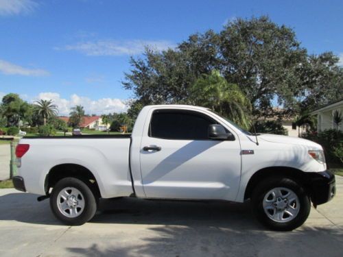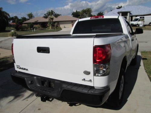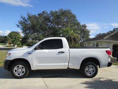 RUST FREE FLORIDA TRUCK! 5.7 LITER V-8! AUTOMATIC! 4X4! TOW PACKAGE! READY FOR WORK OR PLAY! If you have been looking for an affordable 4 wheel drive pickup for work or even every day driving, then you definitely need to check out this 2007 Toyota Tundra Base 2 Door Regular Cab with the iForce 5.7 liter V-8! It comes equipped with automatic transmission, four wheel drive, tow package, 6 1/2 foot short bed, cold air, factory CD stereo w/aux input, tilt wheel, power mirrors, heavy duty folding bed cover and excellent Bridgestone tires! What a super nice and clean truck that does everything it was designed to do and does it very well. It's the kind I would gladly sell to a friend or family member, so that should tell you something! The bright white paint has a deep shine and color with no rust, dents or fading and the gray cloth interior is fresh, clean and comfortable, not beat up or abused. A few little picks here and there, but way less than expected for a work type truck, you can be proud to drive this on the job or even to church on Sunday! A recent trade-in, it's ready to work and enjoy right away! Of course, the ride and drive is excellent with a strong engine, tight suspension and smooth shifting transmission. And with my service/safety check done and excellent tires, it's ready for any road trip or daily duty! 128,000 miles, but it does have that nice and tight feel of quality and the condition speaks of a well cared for vehicle, so you can look forward to a lot more life out of this one. Toyota's run a LONG time!! Plus, it comes with a certified AutoCheck report so you can purchase with peace of mind! Anyway, be sure to look over the features, options and the pictures below with descriptions. This will give you an excellent overview to help with your decision. PLEASE feel free to call me directly on my cell phone with any questions at all you may have @ 239-940-4170. I want you to be completely comfortable with your transaction and enjoy the whole experience!