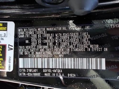 VIN (Vehicle Identification Number): 4T3ZK3BB4EU066457