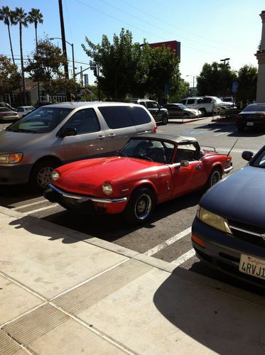 Up for auctioning a 1979 Triumph Spitfire 1500. It has 67,xxx miles. no accident, The car is in running condition, engine sounds healthy and he overdrive transmission is shifting smooth through gears. It has a new Distributor, new Spark plugs, recently oil changed, good engine compression on all four cylinders. Body has minor dents here and there, paint has some cracks/ chips here and there, could used a new paint job. It has a new dash cap, nice wooden dash, new inside upper door capes, new outer & inner window seals, doors seal. Cleaned and painted gas tank, new muffler, good brakes, good clutch, good tires, ok convertible top.
