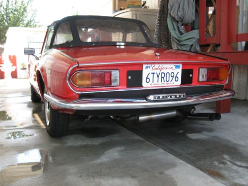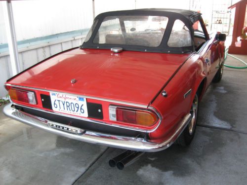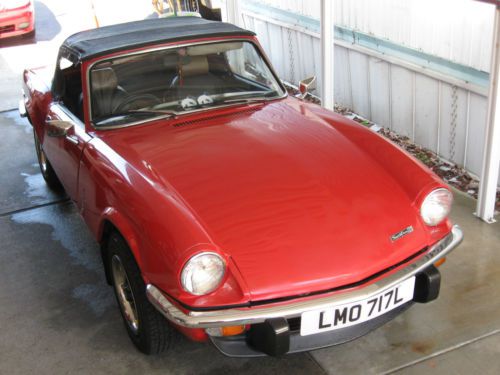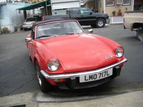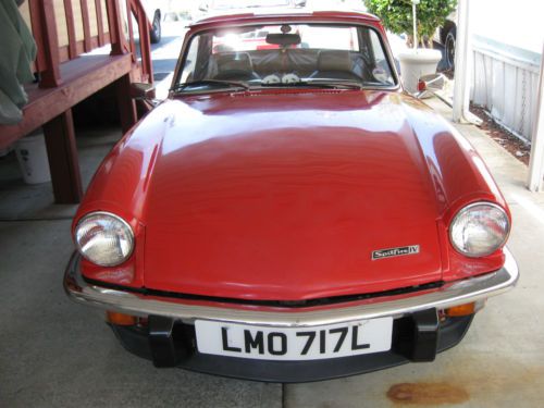 Looking to get yourself into a Cool and Purely Authentic Right Hand Drive British Roadster - Impress your friends, turns heads on the road and confuse the folks in back of you... VERY RARE - Right Hand Drive 1972 Triumph Spitfire Mark IV. This is my weekend car - starts right up, runs, drives, stops - Horn, Lights, Wipers and all Gauges works - Clean Tittle, registered and insured in CA-USA, till April 2015. This car was partially restored by previous owner and was privately imported from Leeds UK comes with 2x original UK's metal License Plates (included). It has 4 cylinder 1296cc High Compression Engine with dual HS2-SU Carbs. was rebuilt in the UK with many upgraded parts (some 16,4xx miles ago). All new Hoses/Clamps, new Stainless Heater's Water Pipe, new aftermarket Oil Injector, new Fuel Pump, Fuel Filters (front and rear), and a brand new & correct Delco Distributor (a Very Rare and Very hard to find item). The 4 Speed Tranny also had new Clutch installed along with 5 new Tires, at the time engine rebuilt (included the spare) Original matching hard top installed and included. Black soft top is in good shape and tucked in the space behind the seats and can be reinstalled with the same 4 bolts that holds the hardtop (the Hardtop's headliner may need redone if you like it on the car all the time). Since I bought this car in 2012: I've Complete rebuilt the Rear Suspension's Leaf Spring & Links with all new Poly Bushings and new KYB Gas Shocks. Also rebuilt Rear Brakes with new Pads, Cylinders, Springs, Speed Bleeders and Stainless Racing Brake Lines. Complete rebuilt Rear Axle Shafts with all new U-joints and a brand new light weigh Drive Shaft with new U-Joints, and was professionally installed by local Drivelines Service Shop. New leather GT's Steering Wheel with red stiches, new Visors, new black Seat Covers and brand new Stainless Exhaust pipe from front to back and Stainless Muffler with dual Chrome Tips installed - Sounds incredible !! (Car has speakers & wiring installed behind seats, but no CD/Radio - my music is the sounds of the Exhaust Pipes)... Car comes complete with original Owner's Manuals, Spare Tire, Jack and Lug Wrench. Note: Small dent in rear near Tail Light and paint has many faded spots and chips here and there - see pictures. Due to my recent motorcycle injuries, I can no longer drive a stick shift, so this Spitfire is priced to sell with VERY low starting bid and NO RESERVE !! 1) Winning Bidder please pay the non-refundable Paypal deposit within 24hrs. and the remaining payment as a Cashier Check within 5 days of auction end. Once all is payments is cleared and complete, I will send you the car's Tittle. 2) Winning Bidder must also arrange vehicle pick-up within 2 weeks from auction end - Please feel free to ask questions, I will assist you in any ways that can make the transaction pleasant and smoothly. 3) I Also have new sets of Front's Stainless Brake Lines, Speed Bleeders, UK's 3pcs.Hardwood Dash, will include as bonus gifts to the Winner! |