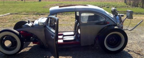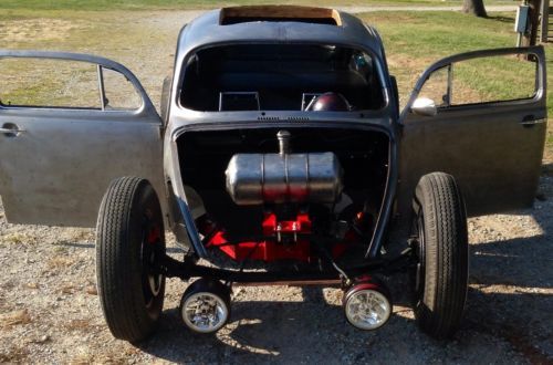 This is a project that is not quit finished. It needs a few minor items to complete. About the car, it started life as '73 Super Beetle. It has a brand new chassis constructed of 2x3 mild steel tubing, grafted to '73 rear torsion. Set up with rear coil overs. Up front is a raised perch resting on a new leaf spring, tied to a narrowed '40 Ford front axle with split wishbones and all new hard wear. Next comes the motor and trans. The motor was a low mile rebuild. I split the case mad installed a Engle W-120 cam shaft and lifters. The motor has all new gaskets, clutch and pressure plate, carb intake, fuel pump, distributor and custom exhaust. Car has all new rear brakes, drums, wheel cylinders and lines. Its has brand new hydraulic clutch and brake setup. The body has been chopped 4 in. Custom dash. The body was left bare steel with 3 coats of clear coat. The rear wheels are wheel vintiquies with vintage pie crust slicks. The front are original '35 Ford wires. The list goes on and on..... Sold as is, NO RETURNS. Payment with in 48 hours. |
