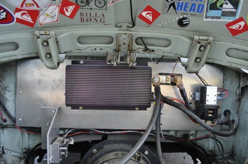 Custom Electric conversion completed in summer 2012. 120 Volt system utilizes 10 12 Volt flooded lead acid batteries + one accesory battery, charged by smart charger using timer. 8 hours to full charge using regular 110 outlet. DC Electric motor, Curtis model 1221 controller. Batteries are all mounted in the back seat area, back seat has been removed. Regular key closes contactor. Charger is mounted behind passenger seat. Plug is mounted in front trunk. Vehicle range is 34 miles depending on speed and terrain. I have driven this vehicle 34 miles on a charge cycle. Top speed is 75 mph. Very smooth driving vehicle, great for daily driver. This was a fun hobby project for my wife and I. I very "green car" Reduce your carbon footprint on the planet. The Electric conversion kit alone was over $5,000. The batteries were over $1,000 and we have put over $12,000 into this beautiful vehicle.