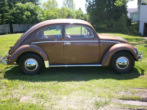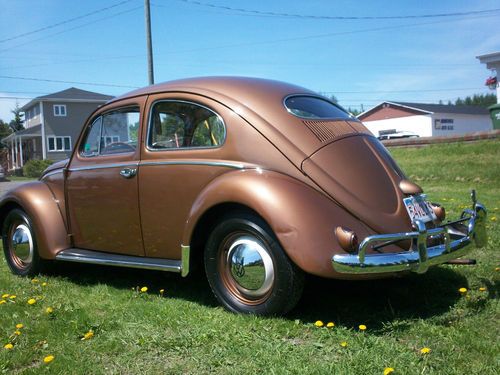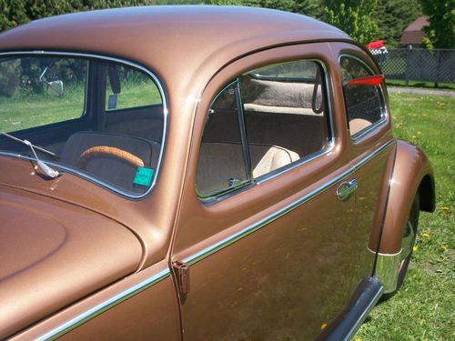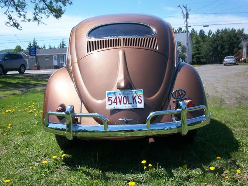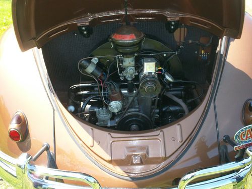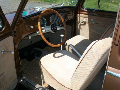 The owner before me repainted the Classic with the 1954 "Cognac Metallic L352" VW Color four years ago. It has the Wool Headliner with Creme Cloth Meterial and Brown Pipping Interior, that was just redone period style. There is of course minor normal wear. The dash is Uncut. Clear title. Nice AAA Emblem with it.