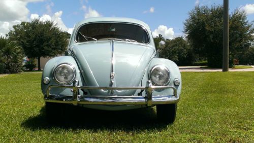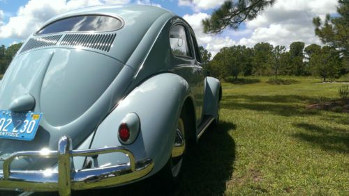 I have been a Volkswagen enthusiast my entire life, owning a red '67 as my first car. I've always had a desire to find another one. After about a year of searching I found this rare car in California. Just over 900 miles since a full restoration. My local Volkswagen specialist says its the nicest he has ever seen. Waves, thumps up, and people asking about the car are common when you take it for a ride. This car is very special and you almost never see one finished to this level of perfection. The body lines are laser straight as if it just left the factory. The interior smells new, the wool headliner is perfect. It is so nice I almost feel bad driving it. The car was restored by a gentleman named, Mike Mathison. Everything was disassembled and reconditioned or replaced with a factory correct part. The body was stripped down to bare metal then painted with correct enamel paint: as per factory spec. The horizon blue paint job alone totaled $6500. Jack Bruck and Chip Knight are credited for the paint and bodywork. The restoration took 7 years and was finished in 1993. Since then, the car has been rarely driven and stored indoors. It has no rust. This is one of the finest examples of a 57 oval window and as near perfect as you will find anywhere. One of last 1957 oval sedans to leave the factory in Germany before rear window change. See Vin# and body# 573386 Many N.O.S. parts Original Owners manuals from Germany and U.S. 15 x 5:60 Firestone black wall tires Full factory tool kit and spare Recent alignment check and service. Fully detailed Brand new Cocoa mats Engine runs strong, will cruise at 65mph+ I