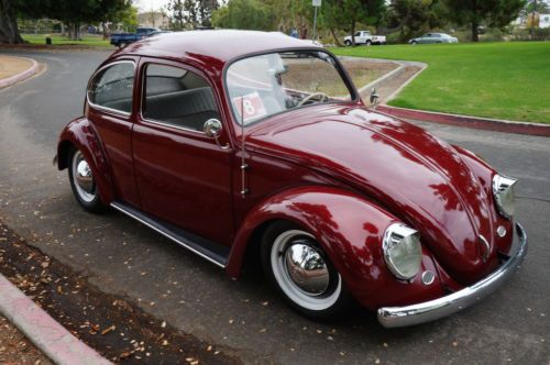This Bug is done California style lowered but drives really smooth. All new wiring. All new upholstery Brand new wheel bearings in the rear end. Paint is in good condition. New stereo system. Newly rebuild 1600cc motor that runs perfectly. Only 7000mi on the rebuilt motor. Freeway Flyer transmission. And it comes with the Black California plates. Rust free Car!