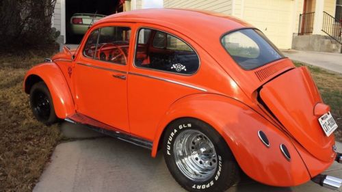 NIce 65 beetle with a 1600cc dual port engine, Wider rear fenders with custom tail lights. Nice paint in and out. alot of brand new parts including: Starter,Battery,gas tank, spark plugs and wires,Carburator, tie rods, Brand new wheels and tires with Smoothies up front and 15x8 wide 5 vw rims in back with 255 tires. Motor pulled recently to replace motor mounts and all seals. This vehicle does not leak at all now. All the lights and blinkers work as well as speedo and fuel guage. Its had a complete brake job with new master cylinder, new plumbing, shoes, etc. It runs nicely and a real head turner. Texas title with new inspection/ registration stickers.