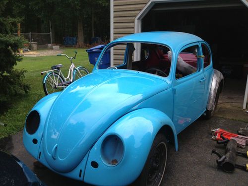 For sale is a 1965 Volkswagen Beetle Project. I had purchased this car with the hopes of restoring it but being in college never had the money available. There is no title with this car. It will only be sold with the bill of Sale from my self and the previous owner. This car can easily get a new title through a Titling service. This car has scratches and nicks in it. The one fender is not painted. There is almost no rust in the car beside some surface and the floor pans are solid. It looks like half of the passengers pan was replaced by the previous owner. The car has been kept in a garage for the past 15 years that i know of, maybe longer. The car comes with a 1600 cc engine that has been recently rebuilt and bored to 1776cc. The engine looks beautiful. I have all the glass for the car, front windshield, rear window, rear pop out windows and both front windows. Also included are are the front seats and the rear bench seat. These are a off white color. There are tons of parts included in this auction. New shocks, stock and aftermarket exhaust, brake kits, window regulators, factory radio, steering wheel, engine stand, front and rear bumpers, heater boxes, newly painted fuel tank, cardboard glove box, 3 speedometers, fuel gauge, original wiring harness and so much more. I will be adding new picture when i get time. This is a perfect car to rebuilt or part out. I need to get rid of the car asap so please send offers. I encourage buyers to come out and see the car.