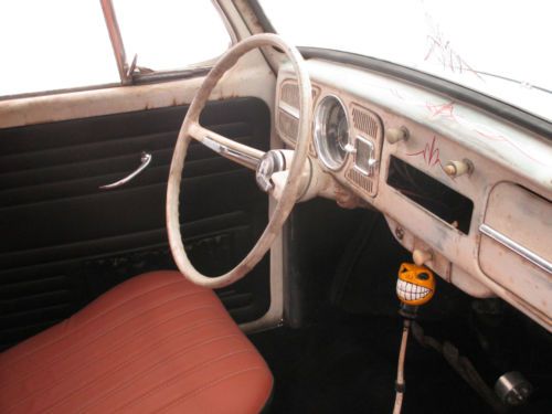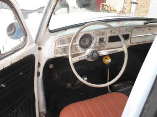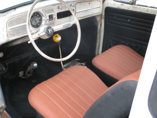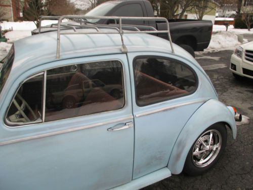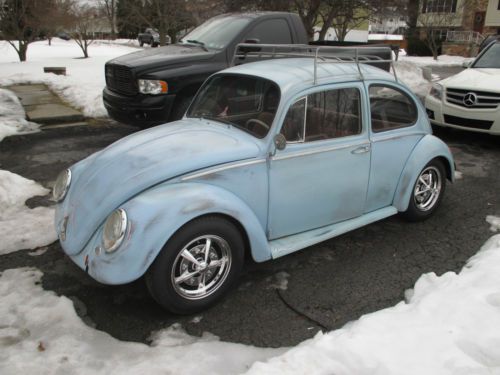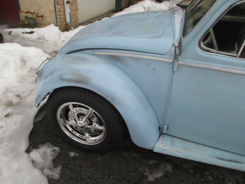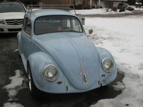 You are bidding on a 1965 VW Beetle . The car runs and drives good. The body on the car was in pretty good condition. We basically sanded the body and tried to give it that old paint look. It is far from perfect, but I think it looks good now for what it is. I didn't want to spend months or years trying to make it perfect. The brakes were completely replaced from front to back; lines, master cylinder, etc. The worst part of the rust was in the fender wells, which were cut out and new metal was welded in. I had the interior redone; seats, headliner and carpet. The motor is a 1600CC, which now has 12volt. There is no heat, because I am running a header. It also has brand new wheels and tires. The front was lowered 2 inches with drop spindles, and rear turned down 2 clicks. As I said before, this is not at all a show car, but a nice car to drive and enjoy. |