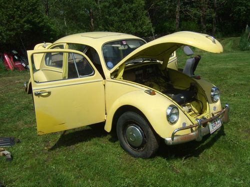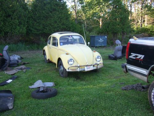 1967 sunroof bug project. The car needs total restoration.NO ENGINE! The pictures tell the story, look carefully! The car needs floor pans, rockers-heat channels, and lower rear quarters. And then some. Was in barn for 15 years. Been outside last 4 years. Please save this classic. Needs interior. Has original front seats but missing rear bottom half of seat. Also comes with 2007 Subaru Impreza bucket seats in very good condition. Sunroof opens and closes. Has original spare tire and tool kit. This is a PROJECT. Buyer is responsible for ALL shipping-You must find your own shipping! PLEASE any questions, just ask Sold as is No return Not sure of actual miles-going by odometer. Happy Bidding!
