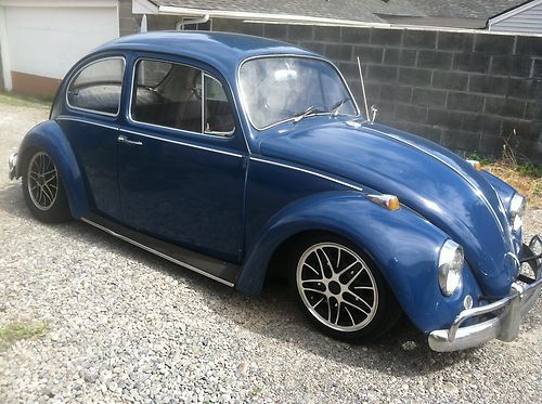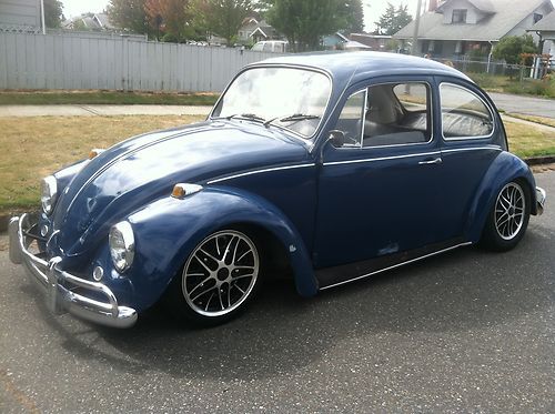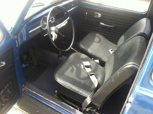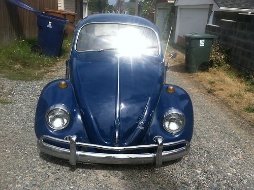1967 Volkswagen Beetle, 1600 dual port is the motor with a manual transmission. Motor runs good, Transmission shifts nice and does not pop out of gear or anything. Vehicle has been lowered in the front with an adjustable narrowed beam and drop spindles. The rear has 3 inch drop plates installed. Vehicle could easily be brought back to stock if someone didn't want it sitting low. The wheels are almost brand new REPRO cosmics. All lights and electrical work as they should. The blue is the original color of this beetle. It appears to have had a re spray quite a few years back. The paint is nowhere near perfect but looks good still. The interior is mostly stock with the exception of a couple upholster repairs by the previous owners.