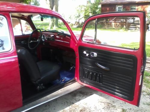 1967 Red VW Beetle Has been professionally repainted, reupholstered, re-wired, and door panels replaced. Has new motor, new tires, and new radio. Exact mileage unknown. Have original title. |