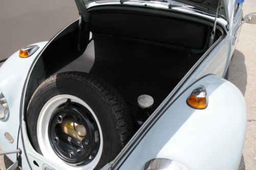Flat 4 steering wheel, Gene Berg short shifter, Rockford Fosgate stereo system with rear speaker tray, rancho transmission (approx 5k miles on it). I recently performed a complete rebuild of the front end including all of the following (all have less than 5 miles drive time and are all new parts): All new ball joints, wheel bearings front and back, steering box, steering dampener, turn signal switch, turn signal relay, 2" narrow CB performance front beam, Airkewld front single pot Wilwood disc breaks, Airkewld custom lowered shocks all around, break master cylinder, new rubber fuel lines, stainless steel flexible break lines all around, new steel hard break lines all around, fuel tank cleaned and coated inside and out with rust preventer. Entire front clip cleaned and coated with POR rust inhibitor The rear was also lowered 1 outer spline with new rubber grommets and many rear pieces sandblasted and powdercoated. I am also including the original 1967 front beam, 2" narrowed CB performance front sway bar (removed due to ground clearance), a box of goodies (including fan belt, hoses, various gaskets, etc), car cover, original steering wheel and shift lever, grease gun, battery tender, and torque meister wrench for rear gland nut removal. Issues with the car I am aware of include a rusted area in the rear package tray (this has been coated with rust converter and temporarily patched), a fairly large dent in the right rear fender, and a small rub on the front tires on wide turns. It also needs the front alignment done as has not been done yet after the rebuild. As best I can tell, the engine is NOT original to vehicle and is a 1300cc. Will ship, but buyer to make arrangements please. Original mileage is unknown. |