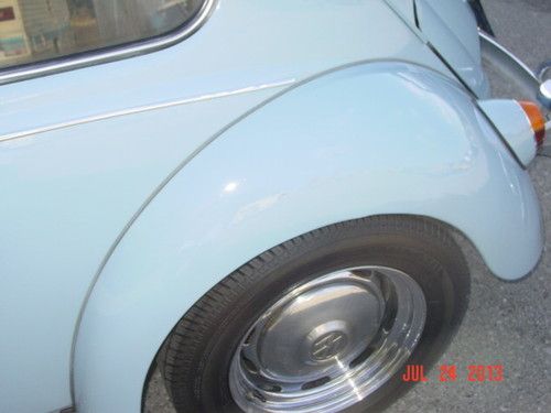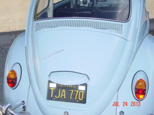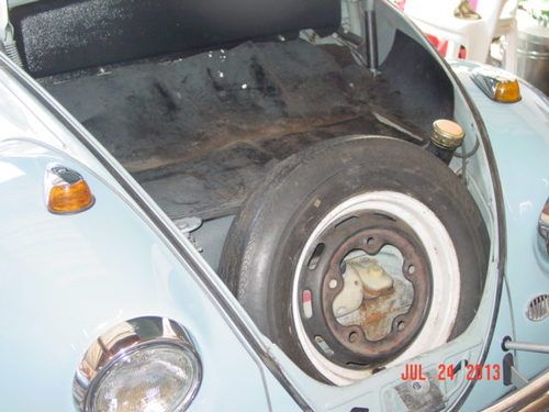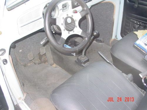 Bug is in good condition inside and out.Motor is a 1600 dual port with electronic Ignition,stock carburetor,generator.Has adjustable front end.new tires with chrome wheels,has AM/FM/CD Player with a set of 6x9s behind rear seat.interior is in good condition with no rips at all,Underneath is rust free even around the battery area.car drives great.All electrical working,horn,blinkers,wipers,reverse lights,headlite,running lites.It does have both original black Plates.I will also include a box of misc. Parts with 3 other carburetors as seen in picture.If you have any questions please call 408-209-3309