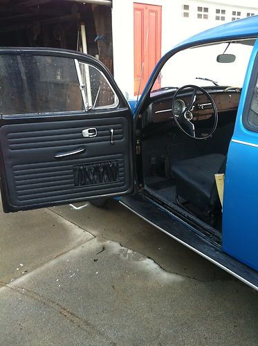 Original owner, classic VW Bug. Runs good with rebuilt engine less than 200 miles on it. Brand new Tires, gas tank and Brake Cylinders replaced. Was originally Black painted Blue ( has paint scratches). Inside door panels just replaced black, new carpeting and new Radio (No Speakers). Car has been used very little past 10 years.