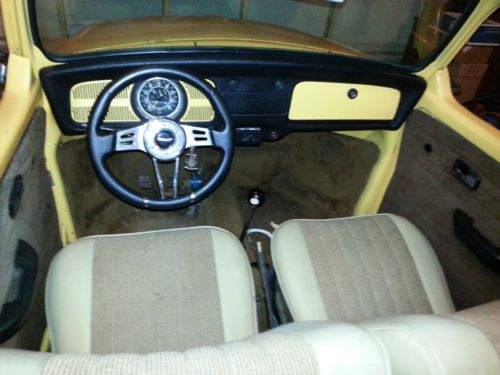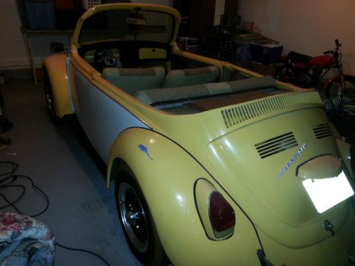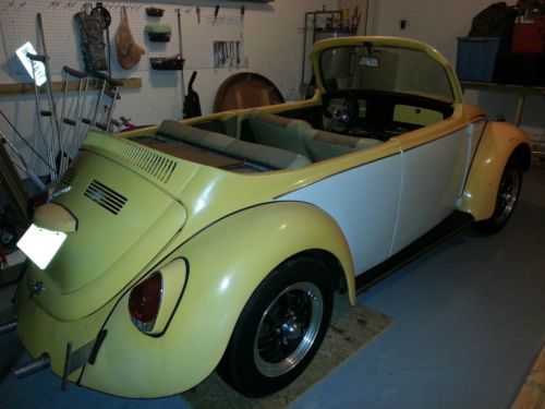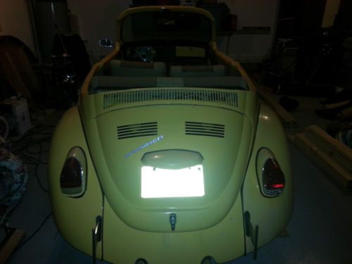 Up for sale is an awesome little 1968 Beetle. This was originally a California car and is in great shape (70%) with no rust, some small dings, and a couple spots where the paint is rubbed off. This car will need to be painted and some touch up work done if you are looking for a show car, however, we have used this as a play car and it is great for it. This was originally a hard-top car and based on the work I would guess that sometime in the mid to late 70's the hard-top was removed. Everything was smoothed out and fiber-glassed and appears to follow the body lines flawlessly. We were looking to eventually send this car in for paint, a 4 inch drop, disk brakes, and some other little custom work due to the fact that it has already had some major custom work done (the removal of the roof/top that is). It is a 4-speed manual and the transmission is in good shape. Shifts smoothly and drives like a champ with the exception of the carburetor needs to be readjusted as it will sometimes idle down to the point where it shuts off only to restart with a firm foot on the gas and a turn of the key. As with a lot of cars there is some bad along with all the good. The carpet was glued in (if you are familiar with resto work then you know that that adds about 6 to 7 hours worth of labor to get it out and then remove all the glue resin), the few small dings it has in it (mainly the front fenders an a couple on the "trunk"/"hood"), speedometer doesn't work but we use it as a toy to go to the beach/lake during the summer and things like that so never really was a concern to us, and the rubbed of paint and few bubbles in the paint that can be seen below the license plate (none of which have rust under them). No radio or A/C (what good is A/C when you don't have a top) and no windshield wipers because hey, with no top you won't be getting caught in the rain (ok I guess that should say you won't get caught in the rain often). Very little bad with this car when you consider the lack of rust, the fact that the car is in good reliable running condition, and the interior is in good shape. Please contact me either via email or via txt at 325-261-2588 with any questions you may have or to request additional photos. SIDE NOTE: This vehicle does have a clear TN title...which I lost and am applying for a new title Friday morning. Titles in TN usually take about 14 business days to arrive in the mail after applied for. When title arrives I will immediately overnight within the U.S. and for those buyers outside the U.S. I can Priority Mail it out or send with the vehicle should it take that long to ship. I know this is an inconvenience for some and for that I am sorry. |