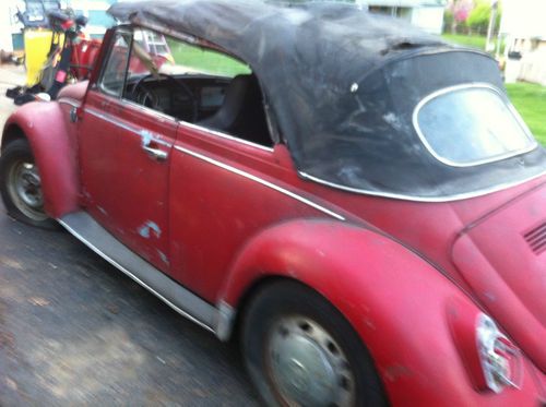 Up for auction is a 1968 beetle convertible karmann. The beetle was road worthy about 15 years ago before parked in a garage. currently does not run and drive needs to be towed. Not a beetle expert but it does need to be restored including floors replaced which i hear is common. It does appear to be all there. this car would be a great project car, or parts car. odometer is showing 35k miles. As i said not an expert so message me with any concerns and i will do my best to help.
