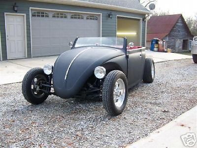 1969 Volkswagen Bug, 1600cc single port stock engine with EMPI stinger exhaust. Flat black urethane paint, interior, trunk and engine compartment with new paint, complete new interior… door panels, carpeting, seats etc… Front disc brakes, new wheels and tires, new rear suspension. Front beam flip, top remove and smoothed, shaved door handles, windshield has been chopped. Car has been sitting in barn for 2 years, put fresh fuel in it and started right up. Does spit and sputter a little under load. Will need a new battery and some possible tuning on carb. |