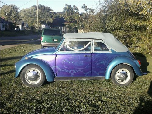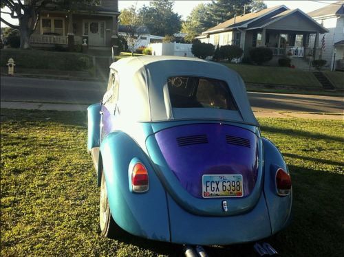 There are a few minor scratches and one small dent (smaller than a dime) in the paint. The brilliant blue and purple paint has a great sheen. The interior leather is in good condition with only some sagging trim in the back seat but no fading or discoloration. The car runs well (engine was rebuild by previous owner in 2007, new carburetor in 2009, new electrical in 2011) but is not great for winter driving as there is no heater but all the hook-ups are there. The custom snap on windows seal up surprisingly well but are not my favorite feature as they are not aesthetically perfect. Comes with a new bumper and brackets as well as a "wind-up key" accessory that can be added on to make the car look like a wind-up toy. This could be a great show car considering the Yellow Submarine themed paint job. It gets a lot of attention when I take it out for a drive. I have done a video test drive as well if you are interested just let me know. I have just put in new seat belts in the front and there are some for the back seat as well that have not yet been installed. The modern stereo works great and is compatible with an iPod/iPhone. In the picture of the interior I have seat covers on the front seats since they are the seats used most often and I wanted to keep them in good condition. If you have any questions just let me know.