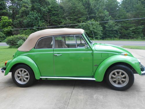 Now is the perfect time to put the top down and drive a really fun car that always turns heads. I am the second owner, with only 21367 miles on the odometer. There is absolutely no rust on this car and It has NEVER been left out in the weather not even in the dew. The apple green color is complimented by the new tan canvas top, headliner and interior. New brushed alumium mag wheels ride on new tires and shiney stainless steel running boards. A deep throaty exaust system says, "here I come"! You will not be disappointed with what you see and hear in this classic but yet sound updated convertible.